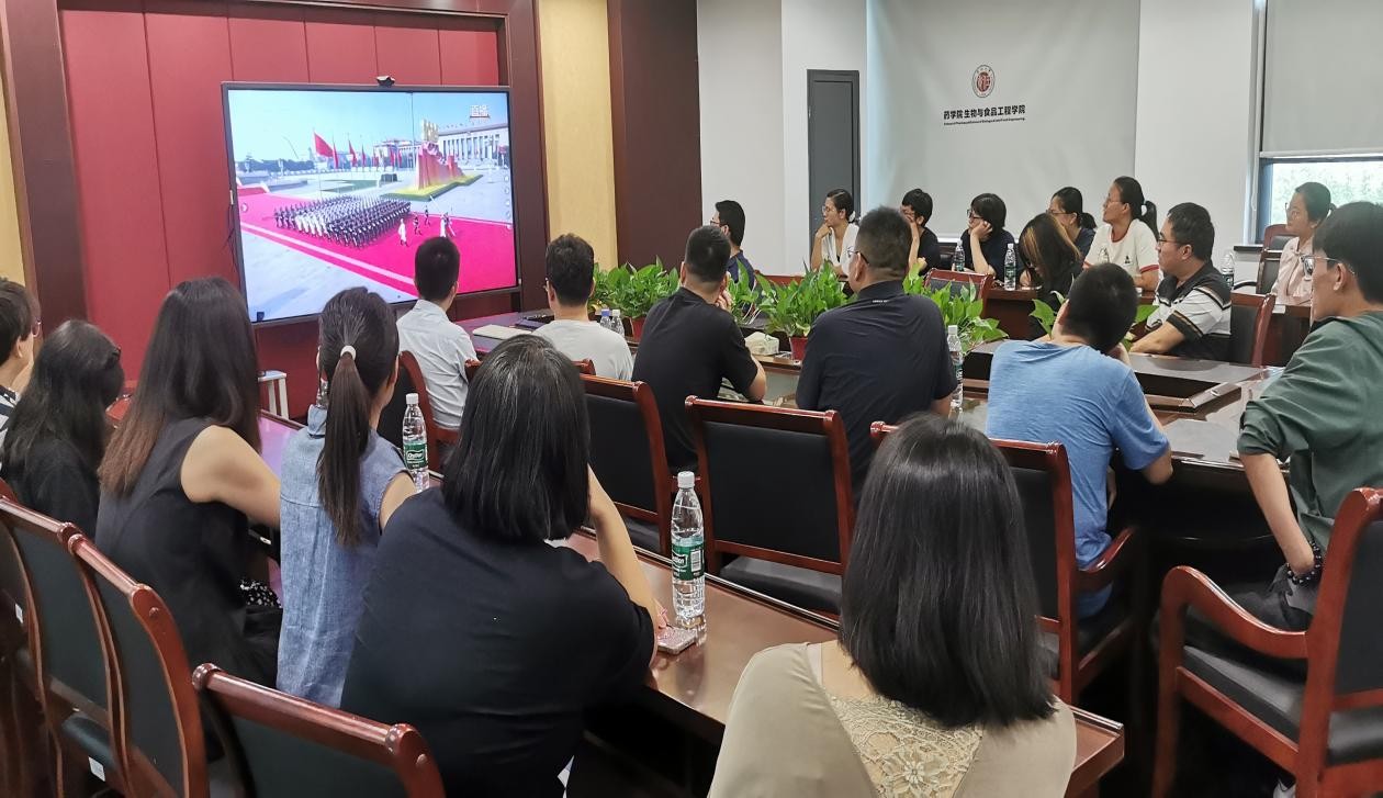 为深入学习贯彻习近平总书记关于弘扬伟大抗战精神的重要论述,引导广大师生铭记历史、缅怀先烈、珍爱和平、开创未来,在纪念中国人民抗日战争暨世界反法西斯战争胜利 80 周年大会隆重召开之际,药学院于9月3日上午组织师生在学院会议室及线上平台同步集体观看大会直播,共同见证这一庄严而神圣的时刻。