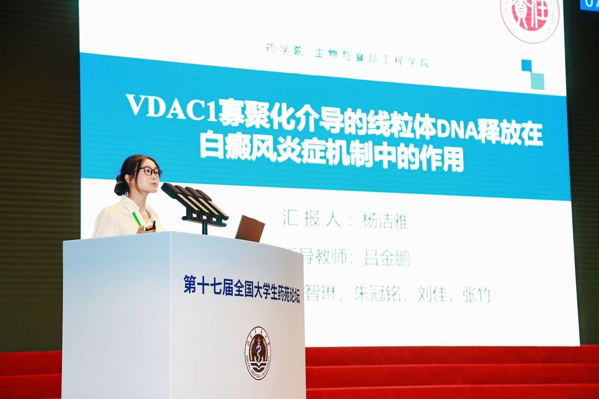 在本次比赛中,我院学子表现出色,脱颖而出,由吕金鹏老师指导、杨洁雅、朱冠铭、赵智琳、刘佳、张竹同学共同完成的科研项目《VDAC1寡聚化介导的线粒体DNA释放在白癜风炎症机制中的作用》荣获创新成果一等奖与优秀论文奖。该项目聚焦于白癜风的炎症发病机制,揭示了VDAC1寡聚化介导线粒体DNA外泄在炎症信号激活中的关键作用,为阐明白癜风的分子病理机制及相关治疗靶点提供了新的科学依据,充分展示了我院本科生科研创新的实力与潜能。