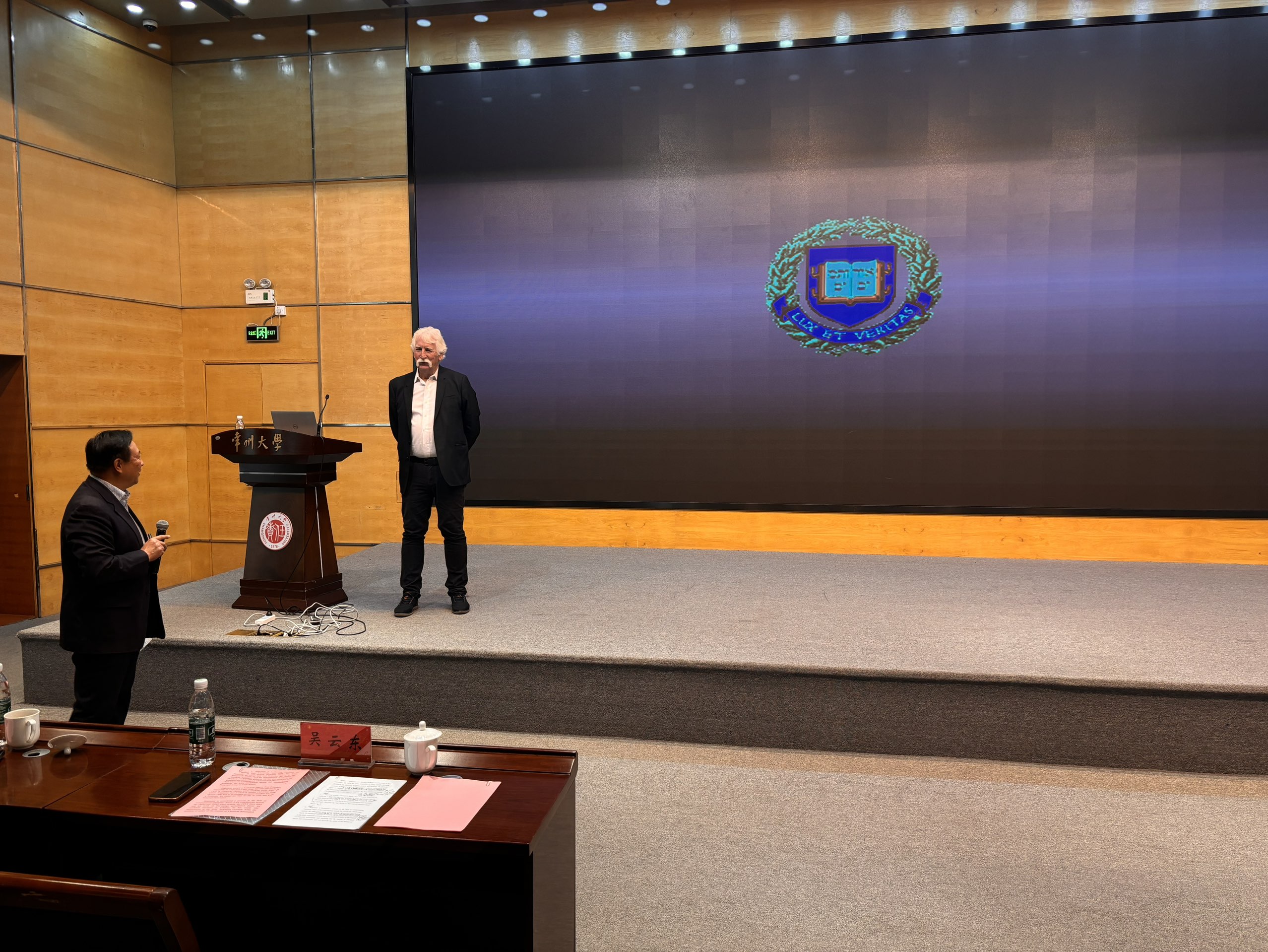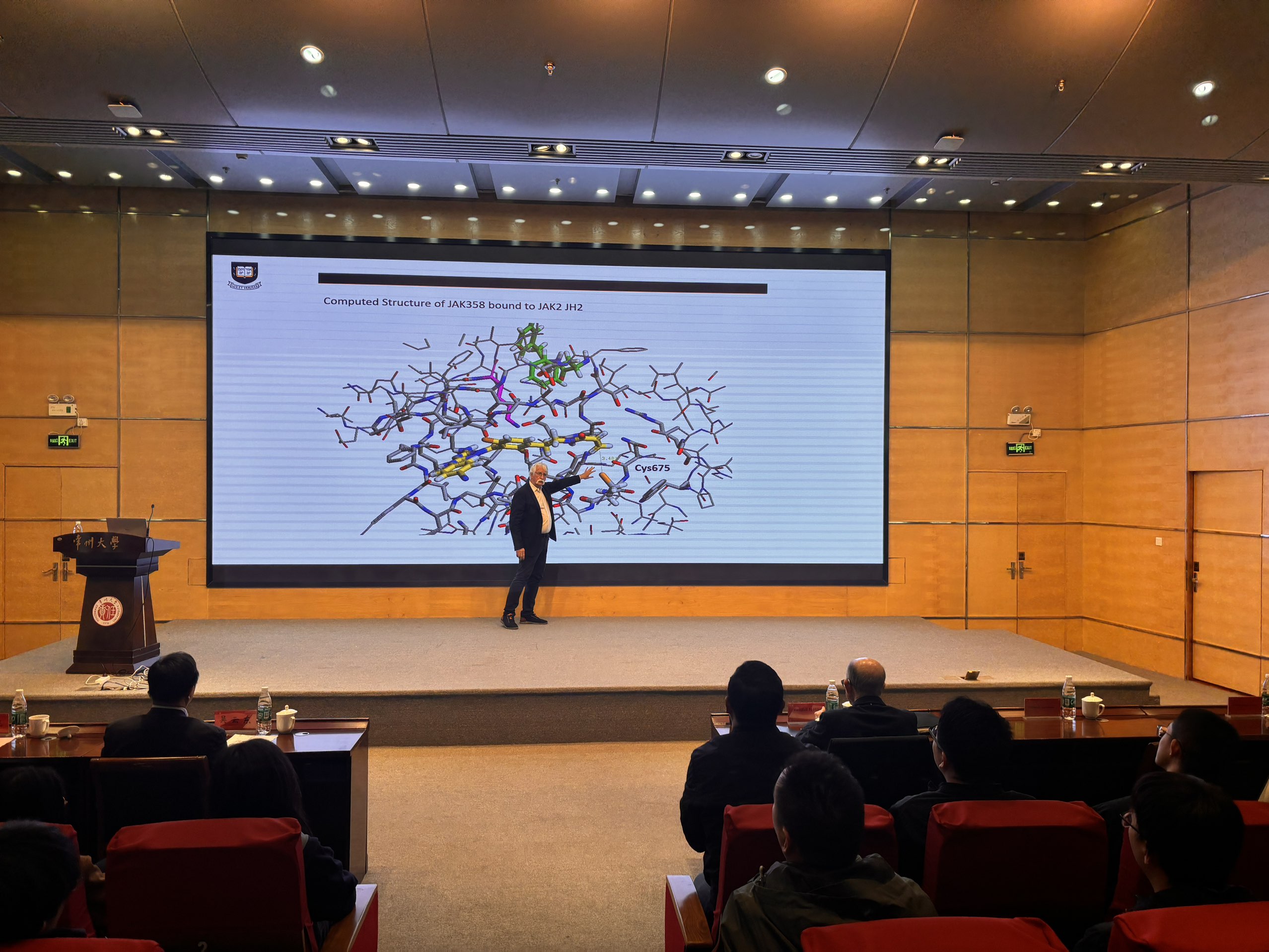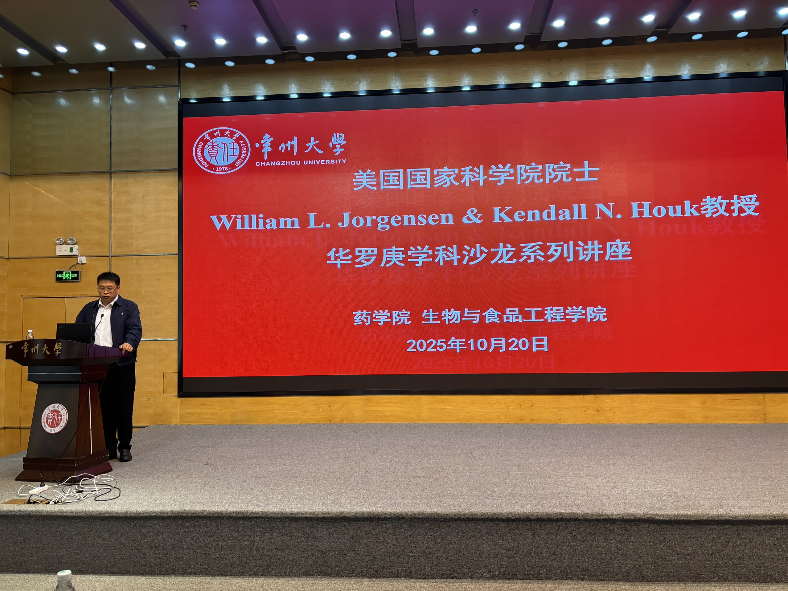 2025年10月20日上午9点,美国国家科学院院士、美国耶鲁大学Sterling化学教授William L. Jorgensen应邀参加常州大学药学院“华罗庚学科沙龙”活动,在文彰楼报告厅作题为“自由能计算的演化:从丁烷到药物发现(Evolution of Free-Energy Calculations from Butane to Drug Discovery)”的学术报告。报告会由副校长李亚飞和中国科学院院士吴云东共同主持。