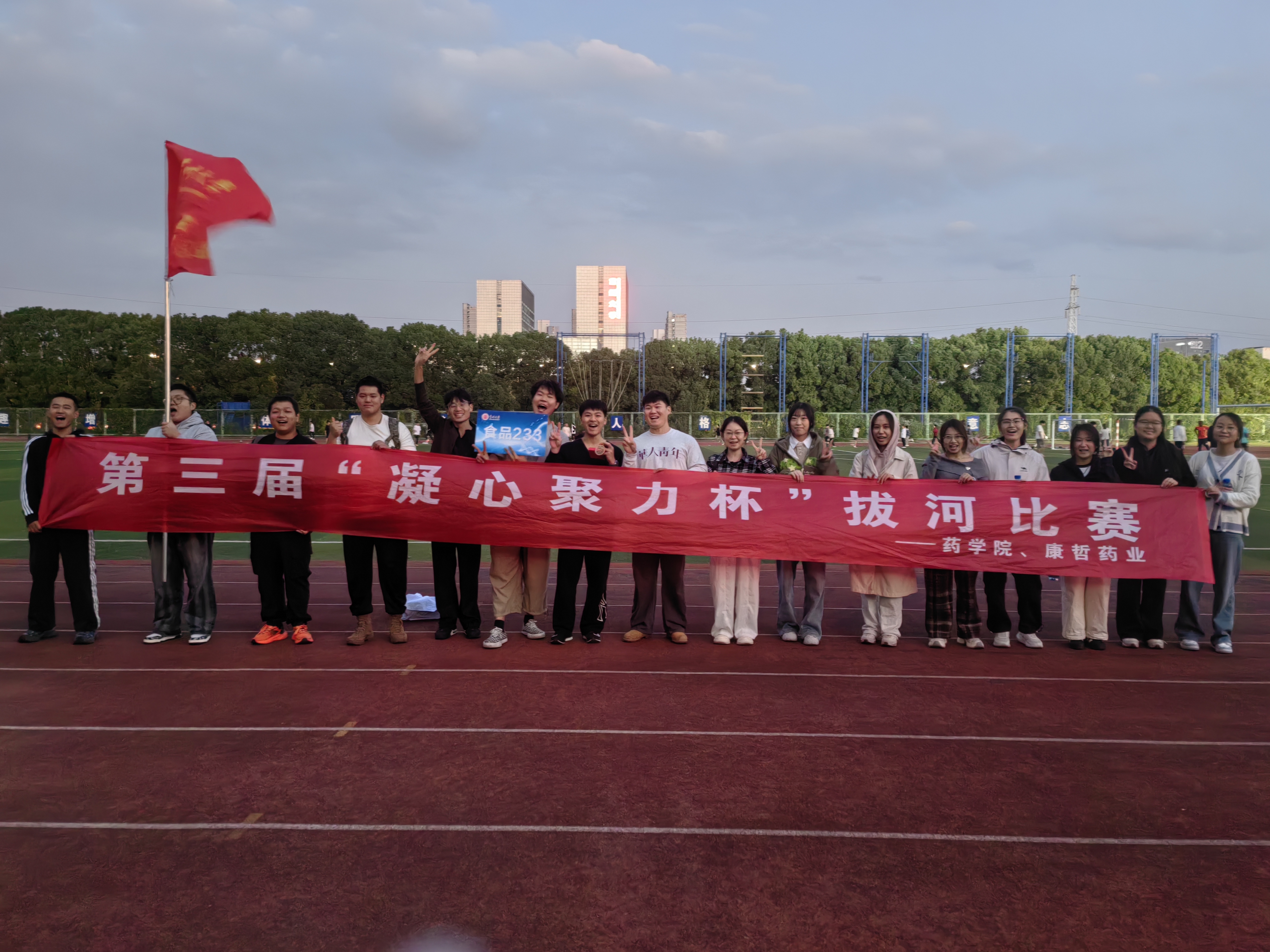 2025年10月24日下午,第三届“凝心聚力杯”拔河比赛于常州大学运动场圆满落幕。本次比赛由药学院与康哲药业联合举办,共吸引本硕26个班级的师生组队参赛。各队经抽签分组,在A、B、C三个场地展开多轮激烈较量。
