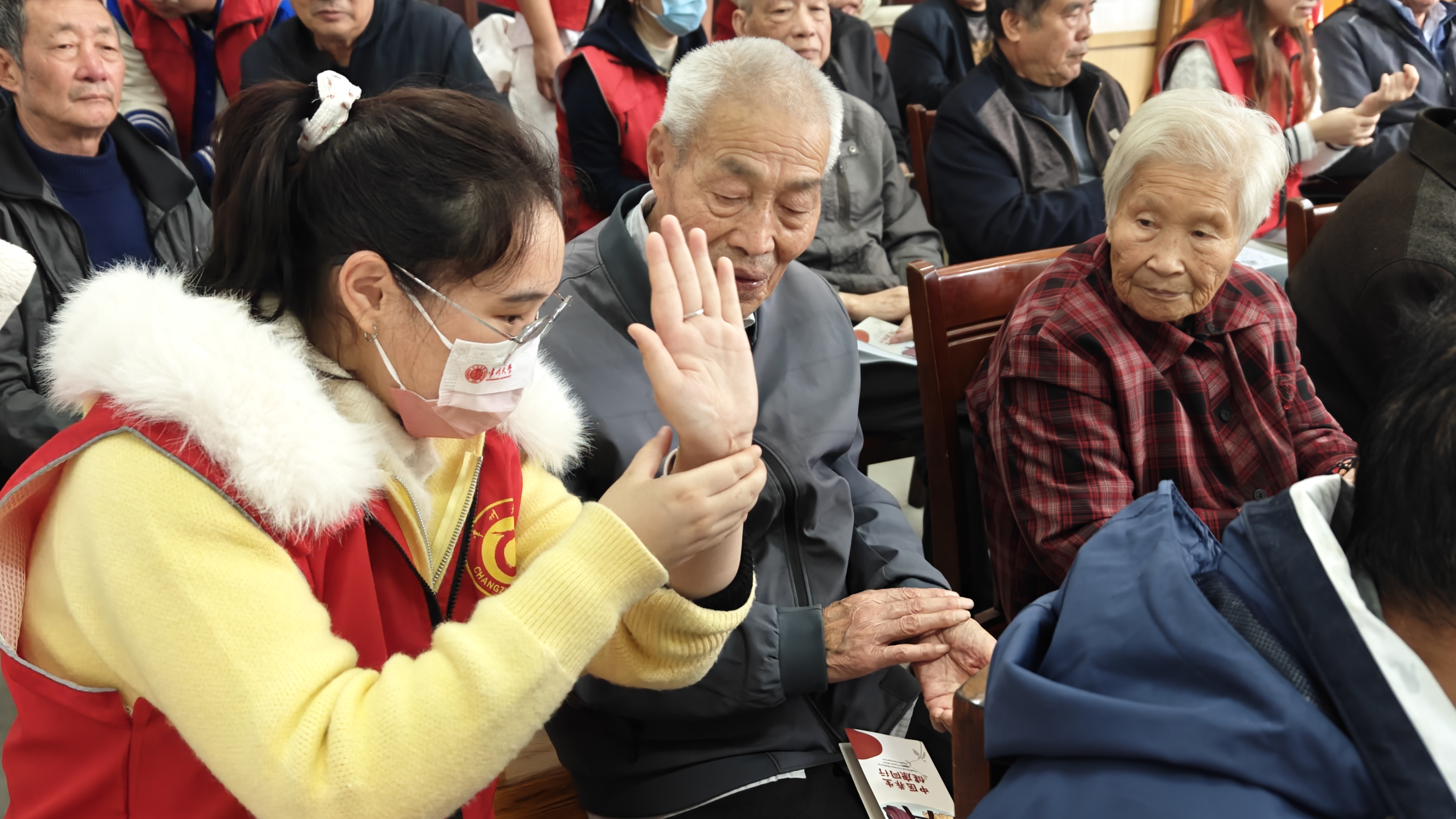 活动紧扣健康主题,志愿者为老人分发养生穴位图,讲解经典穴位的定位、功能及按摩技巧,同时普及过期药品的辨别与处理方法。现场还提供血压、血糖测量服务,互动踊跃,氛围温馨。