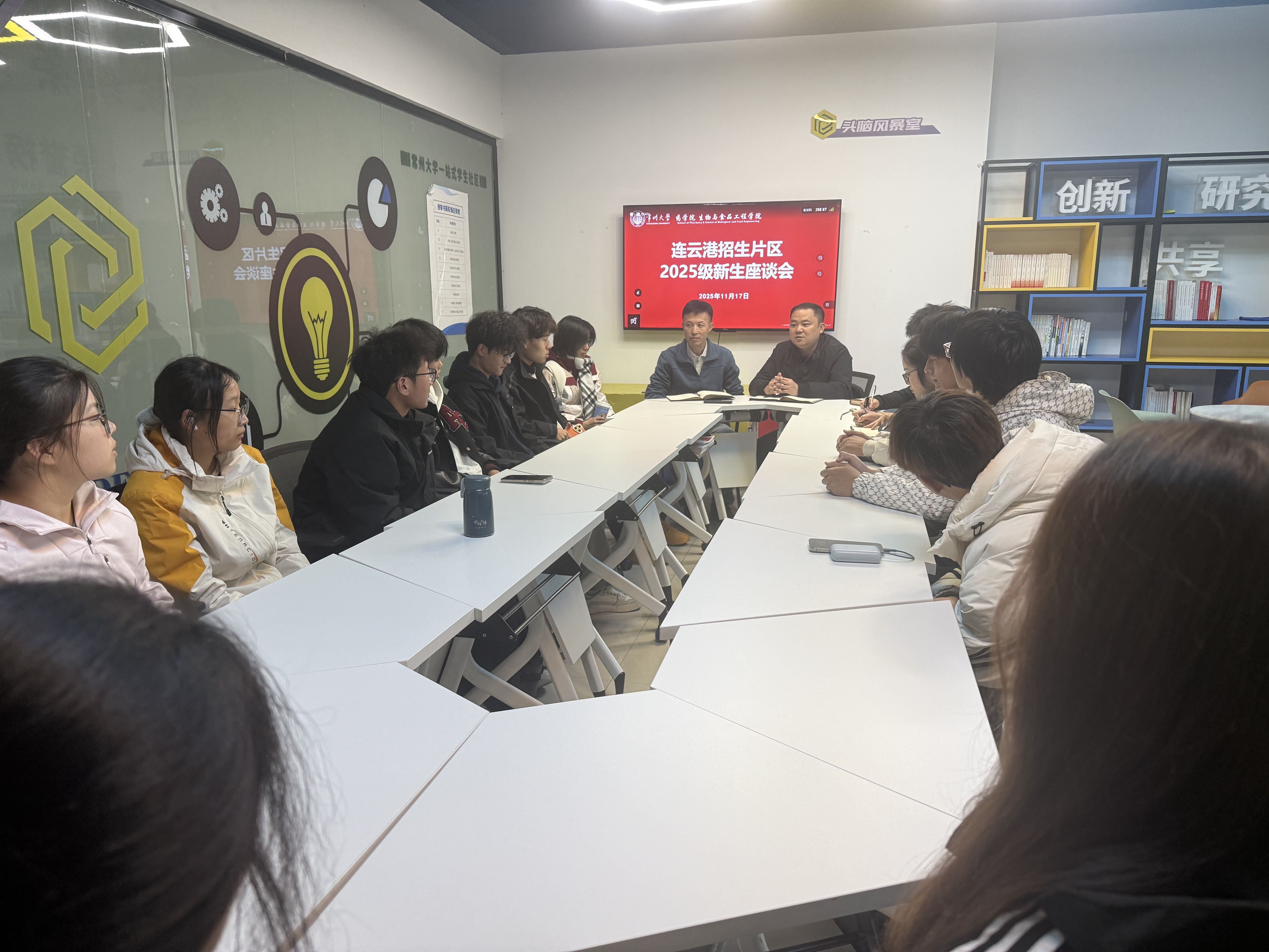 11月27日晚,药学院于“一站式”学生社区开展了连云港招生片区2025级新生座谈会。常州大学学生工作处副处长蔺旭鹏,药学院党委副书记刘燕平,2025级新生辅导员曹志伟,学工办谢菁、戴丁亮,全体连云港籍新生参加了座谈会。