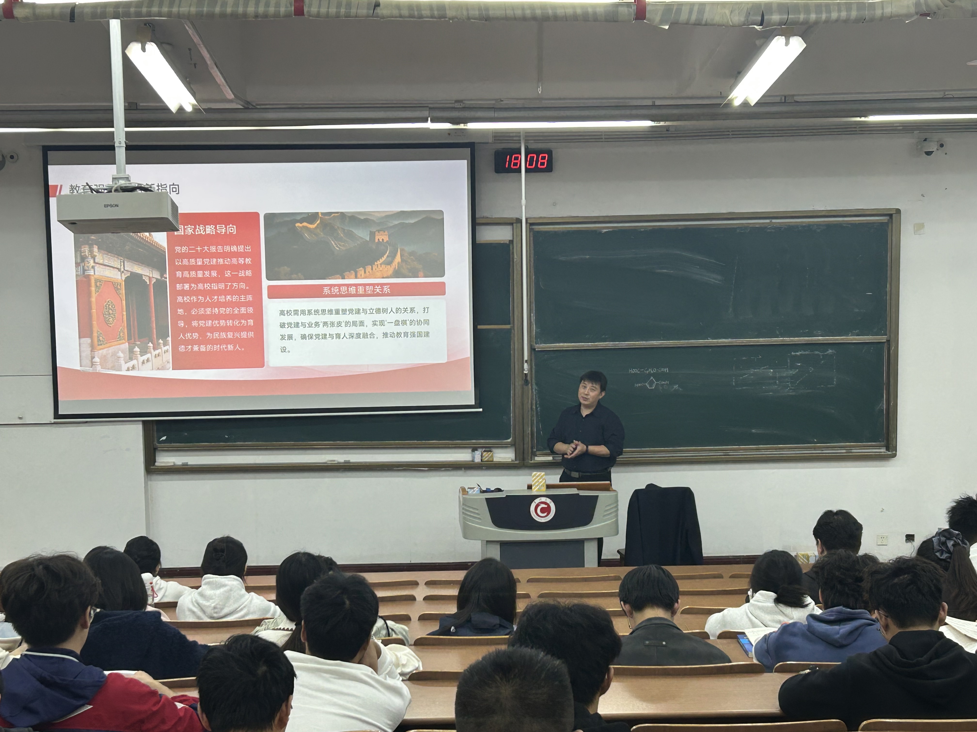 2025年10月31日晚,中以机器人产业学院党委书记何可人于W12阶教室讲授“高质量党建引领科技创新”主题党课。药学院、中以机器人产业学院、医学与健康工程学院、华罗庚学院第78期入党积极分子参与此次党课。