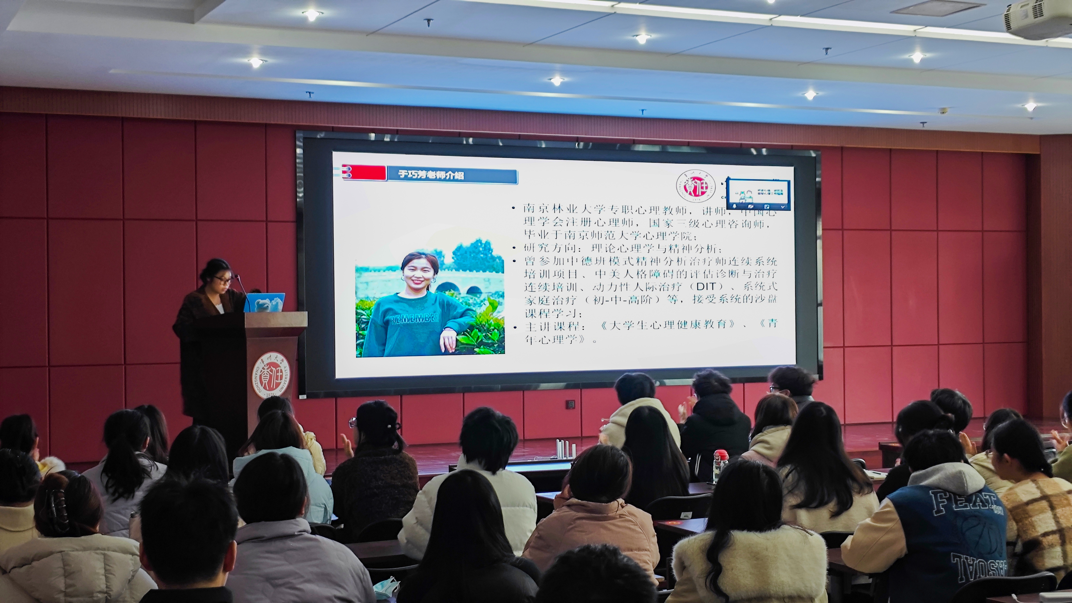 为提升心理支持工作专业化水平,加强心理信息员队伍建设,营造积极健康的校园心理环境,我院于12月12日上午在学院A329报告厅组织开展心理信息员培训。培训由南京林业大学心理健康中心于巧芳老师主讲,研会魏雨诗主持,心理信息员参与。