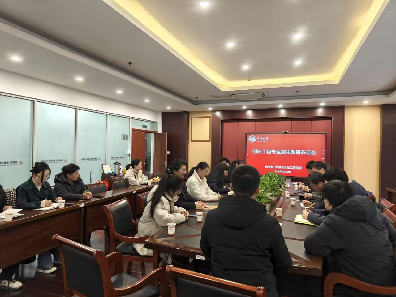 12月22号,常州大学制药工程专业期末教研茶话会在药学院A204会议室圆满举行。本次活动以“总结教学成果、共探育人路径”为主旨,全体制药工程专业教师参加,会议由制药工程系主任严生虎教授主持。