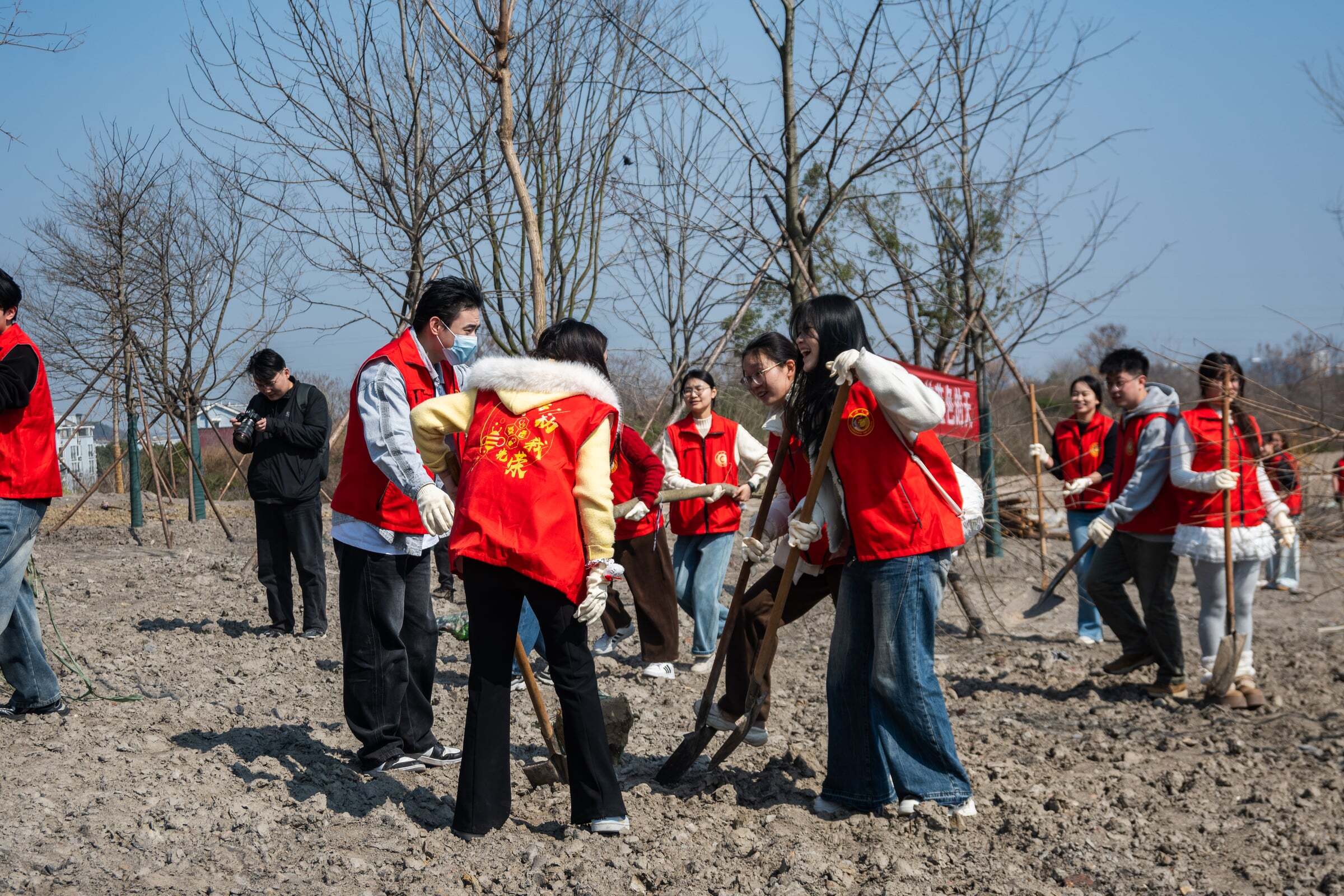活动恰逢常州全民义务植树季,现场虽春寒料峭,但师生热情高涨、分工协作,挥锹挖坑、扶苗培土、提水浇灌,每道工序细致有序。此次植树活动还受到常州电视台、常州日报现场采访报道,充分展现了常大学子践行生态理念、担当社会责任的良好风貌。经过一下午劳作,一棵棵树苗迎风挺立,为初春常州增添了盎然生机。