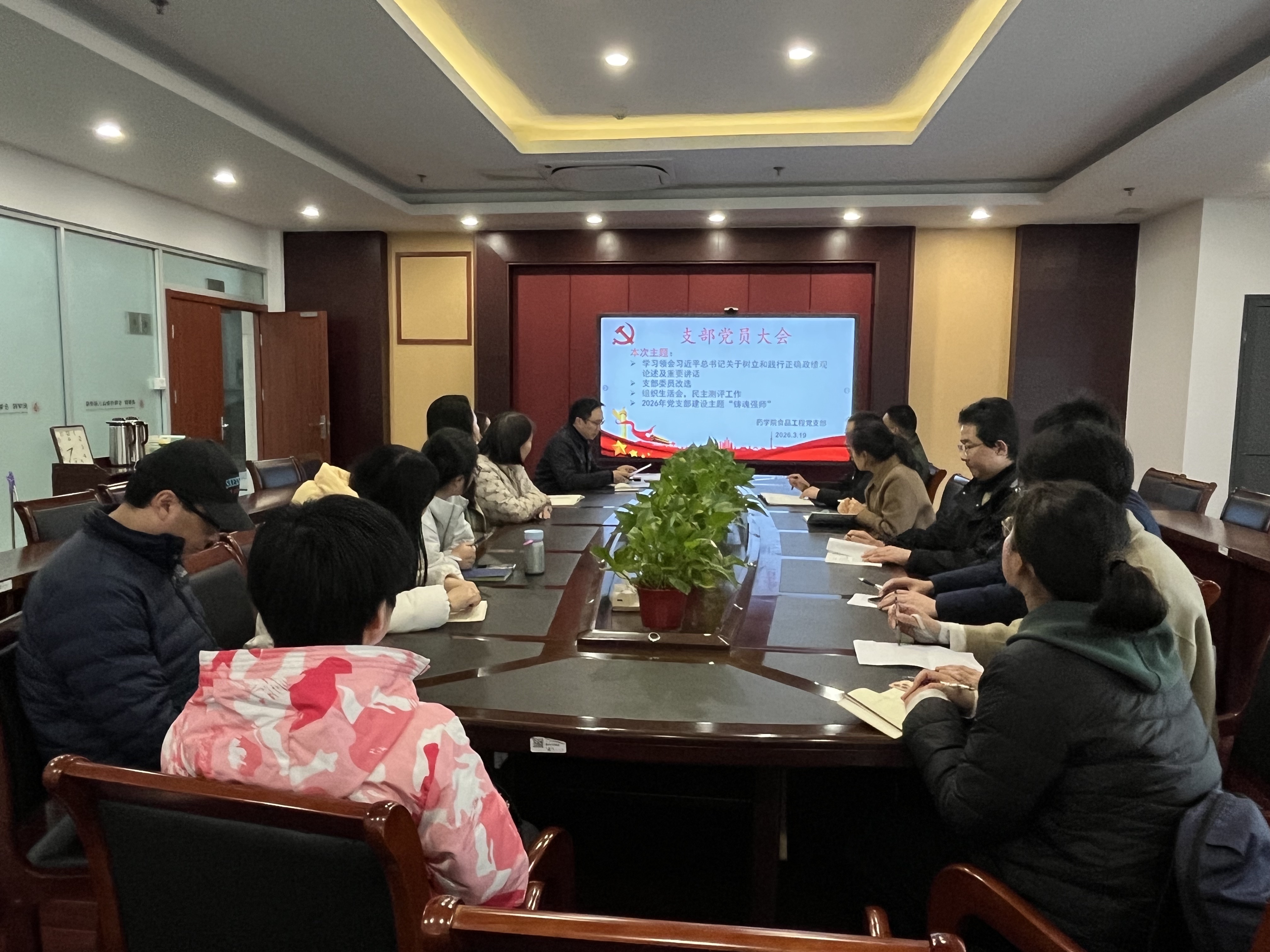 2026年3月19日上午,食品工程党支部召开全体党员大会。会议围绕理论学习、支委改选、组织生活会及年度主题建设等四项议程展开,全体党员参加,会议由支部书记邹平主持。