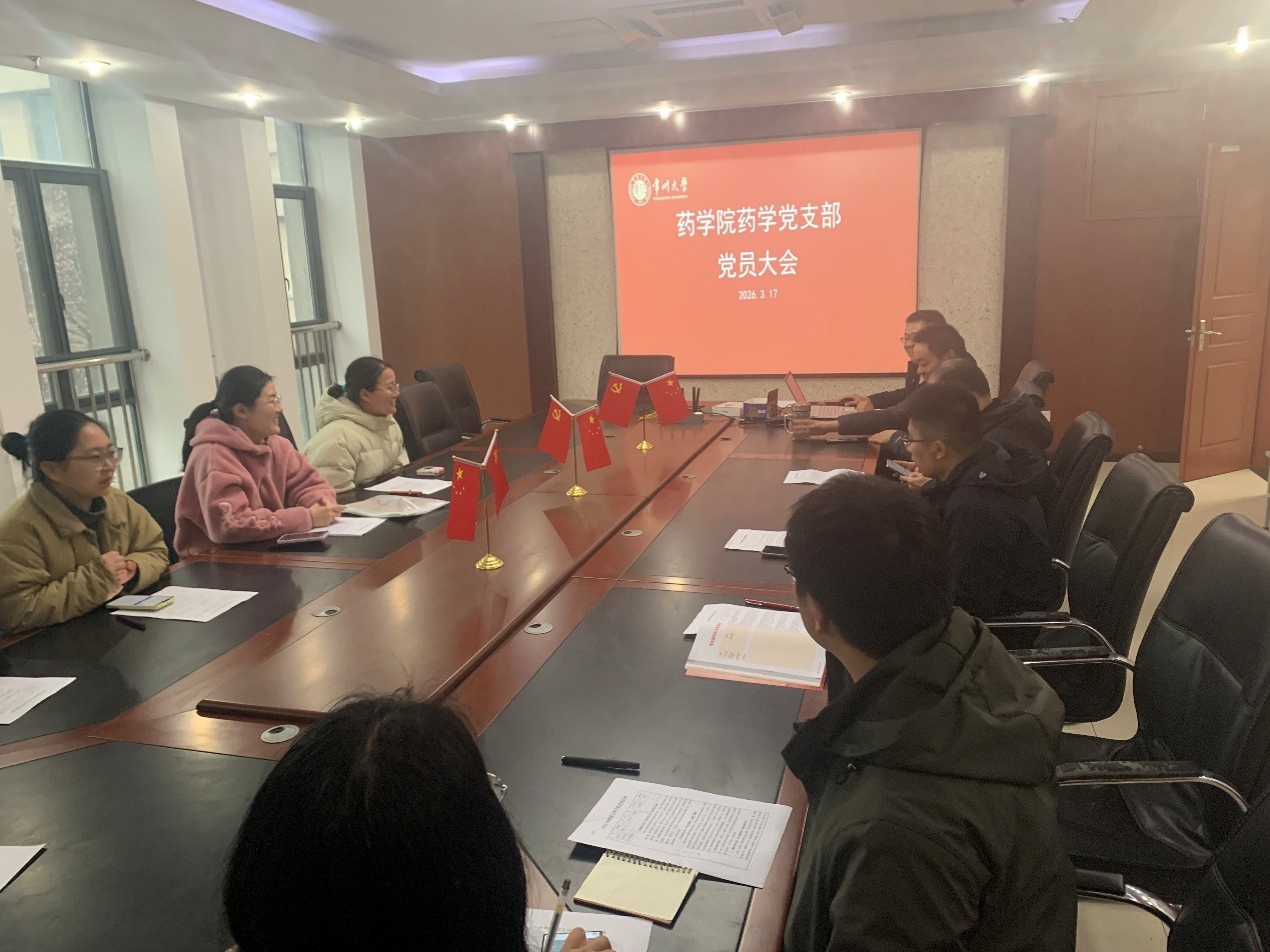 2026年3月17日,药学党支部在药学院A218召开党员大会,会议由党支部书记吕金鹏主持,支部全体党员参会。本次大会围绕队伍建设、教学科研提质、产学研融合等重点工作开展研讨,统一思想、明确方向,推动支部建设与学科发展深度融合。