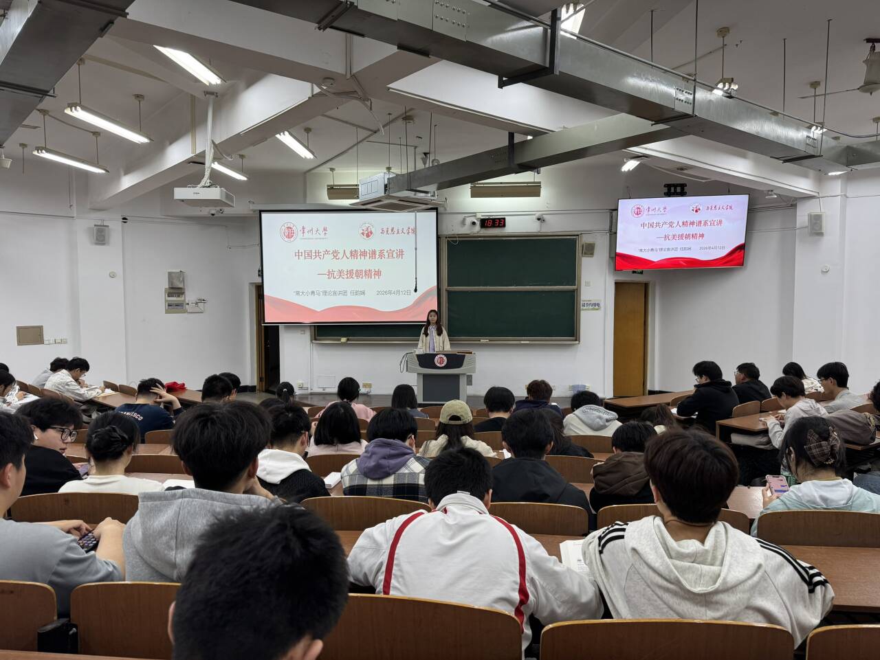 任韵娴系统阐释了“抗美援朝精神”——这是中国人民志愿军在保家卫国战争中铸就的伟大革命精神,彰显了不畏强敌、向死而生的民族风骨与钢铁意志。她指出,这场战争不仅是保家卫国的正义之战,更是中华民族众志成城、共御外侮的生动写照,深刻体现了中华民族共同体意识中团结奋斗、命运与共的核心内涵。她还就如何汲取斗争智慧、砥砺意志品质提出了建议。课程重现的长津湖战役与上甘岭烽火的英雄史诗画卷,深深震撼了在场学员,激发了当代青年勇毅前行的热血担当。
